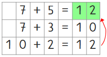 Deine gelöste Aufgabe lautet jetzt: 7+5=12.