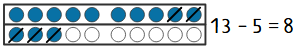 Das Zwanziger-Punktfeld für Subtraktionen ist für dich leicht zu verstehen. Alle Punkte sind hier blau, die Punkte, die subtrahiert, also abgezogen werden, besitzen einen schwarzen schrägen Strich.