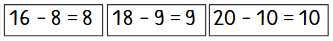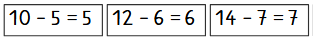 Du erinnerst dich an die Lektion mit dem Verdoppeln und Halbieren von Zahlen? So wie du gelernt hast, dass das Verdoppeln von Zahlen beim Addieren helfen kann, so lernst du jetzt, wie das Halbieren von Zahlen beim Subtrahieren helfen kann. Im Zahlenbereich von 10 bis 20 gibt es zwar nur sechs Zahlen, die sich halbieren lassen, aber in der nächsten Lektion lernst du, wie du die Halbierungszahlen noch einsetzen kannst.