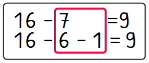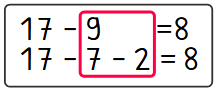 Oft wird die Subtraktion mit Zehnerunterschreitung als leichter empfunden, als Additionen mit Zehnerübergang, da der erste Rechenschritt, das Subtrahieren bis zur 10, sehr einfach ist.