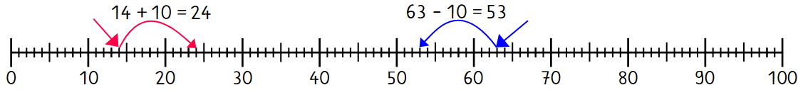 In der letzten Aufgabe hast du in Additionen und Subtraktionen immer nur mit ganzen Zehnern gerechnet. Bei den folgenden Aufgaben ist nur noch die zweite Zahl ein ganzer Zehner. Die folgenden Beispiele zeigen dir die Rechenweise: